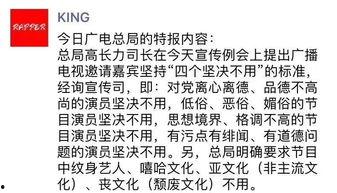 近年来,我国娱乐圈可谓是风起云涌,明星们纷纷跨界,各种综艺节目层出不穷。随着娱乐圈的快速发展,一些不良现象也逐渐显现。为了规范娱乐圈秩序,维护广大观众利益,广电总局近日发布了新的规定。那么,这些新规具体有哪些内容呢?让我们一起来看看吧!